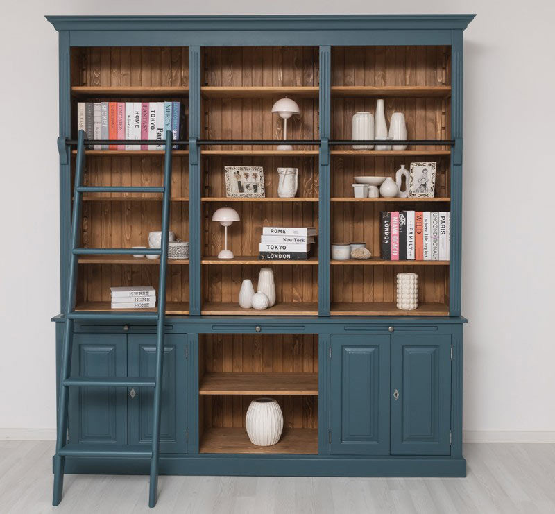 Cette bibliothèque est proposée en plusieurs finitions : peint, ciré, brossé ou brut, selon votre ambiance intérieure.